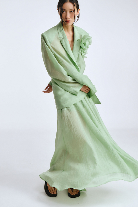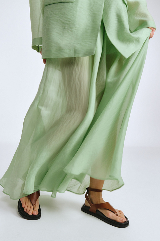 Смелый и провокационный элемент гардероба — прозрачная юбка-клеш. Изюминка для особых случаев, вечерних мероприятий или создания ярких нарядов. Пояс на резинке обеспечивает плотную посадку, не сковывая движений. Вторым слоем у изделия пикантный короткий подъюбник. Правильное сочетание юбки с другими предметами гардероба сделает ее дизайнерским элементом стиля и моды.