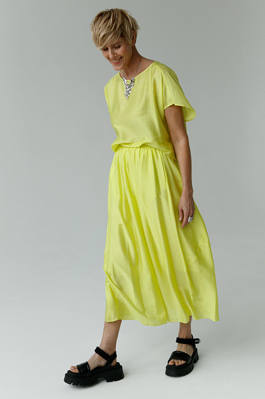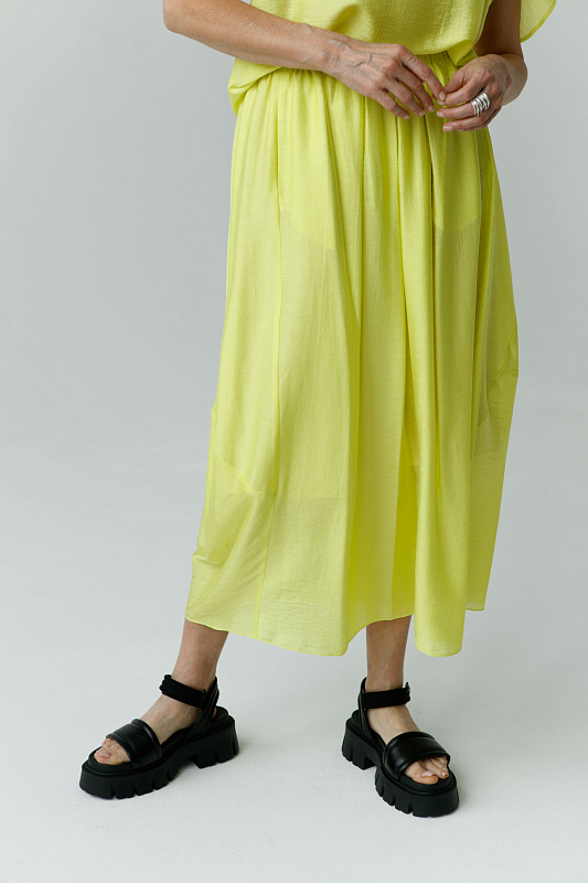 Идеальная воздушная юбка из микромодала с добавлением шелка оригинальной дизайнерской конструкции. Пояс на резинке. Два удобных кармана. Легкая подкладка.