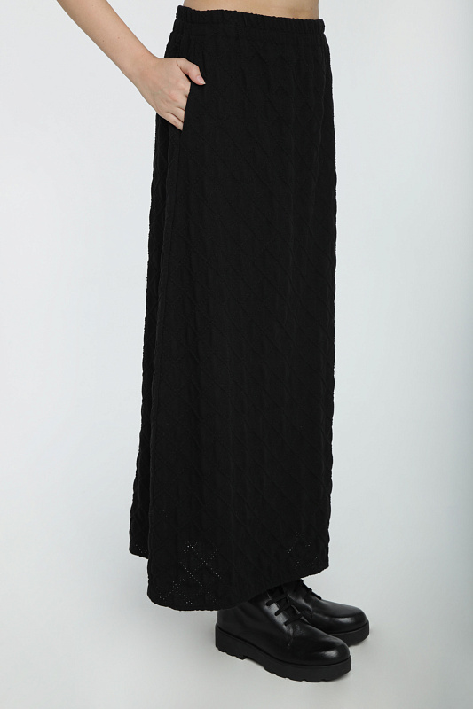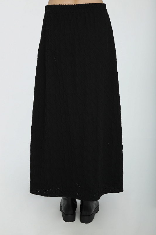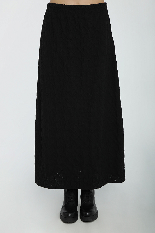Юбка макси овального силуэта из фактурной ткани, на эластичном поясе, с подкладкой.