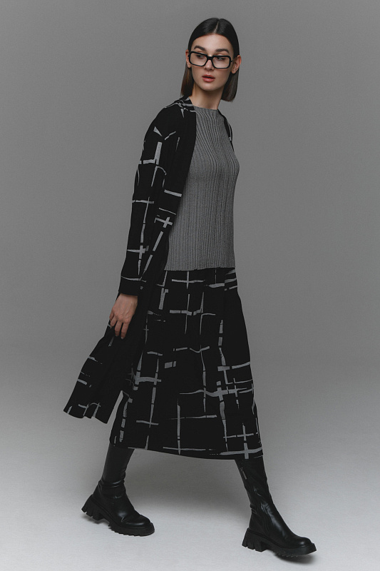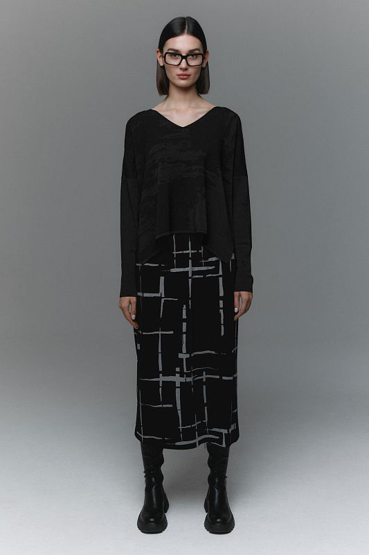 Стильная прямая юбка джерси создана для тех, кто стремится выглядеть элегантно и современно, не жертвуя комфортом. Полотно с добавлением эластана не сковывает движения. Пояс на резинке, карманы в боковых швах.