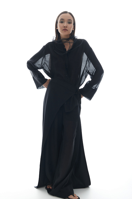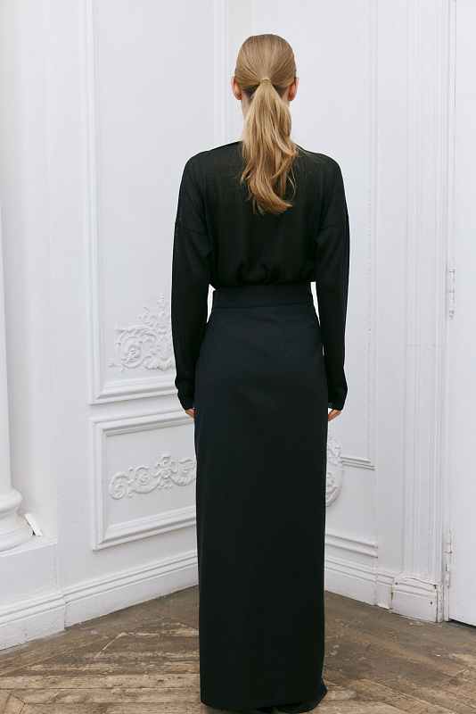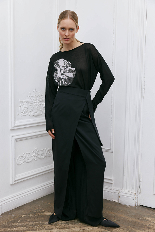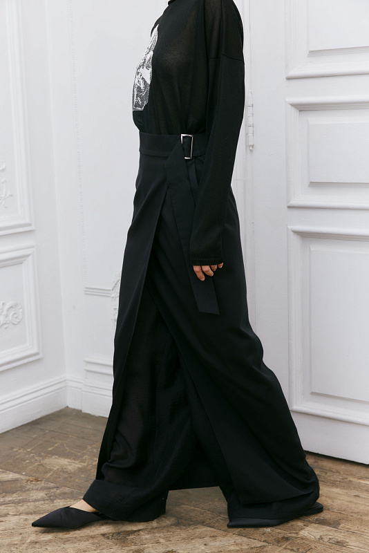 Лишь на первый взгляд модель может показаться традиционной прямой юбкой. Однако дизайнеры разработали уникальный элемент гардероба, который оценят настоящие модницы. Не теряющая актуальности классика — это прямая длинная юбка. ЗапАх юбки фиксируется пряжкой на поясе, привлекая внимание к акцентным деталям. Макси-длина придает загадочности, запАх будоражит воображение, и наконец, изюминка — нет нахлеста ткани. В союзе с прозрачной юбкой арт. 7725200 модель составит эксклюзивный образ. Вискозная ткань будет интеллигентно переливаться, что добавит элегантности. Этот вариант идеально подойдёт для праздничных мероприятий.