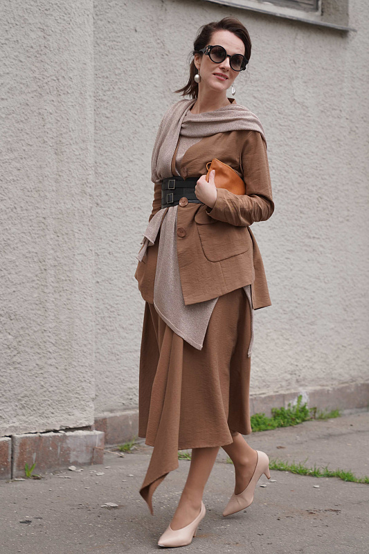 Юбка асимметрия-клеш сложной авторской конструкции. Внутришовные карманы, пояс на резинке. Модель выполнена из уникальной ткани нового поколения – тенсель, – экологически чистого, очень прочного, дышащего и не вызывающего аллергию материала, который изготавливают из древесины австралийского эвкалипта.