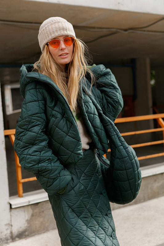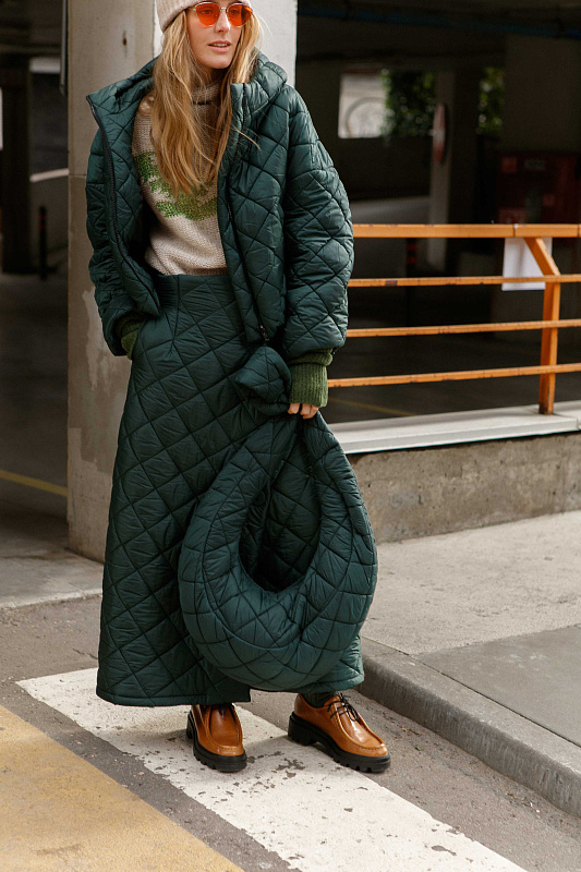 Креативная теплая стеганая юбка на больших дизайнерских пуговицах.Карманы с отрезным бочком.