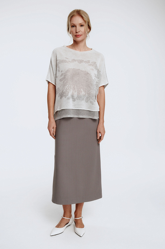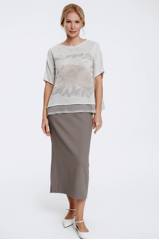 Модель обладает рядом преимуществ. Она элегантна, удобна и идеально сидит по фигуре, подчёркивая достоинства. Благодаря резинке на поясе, юбка идеально садится, создавая эффектный силуэт. Сзади юбка имеет молнию и небольшую пуговицу для комфорта. Разрез-шлица сбоку выполнен изысканно и добавляет модели шика. Уникальная фактурная ткань — результат гармоничного союза вискозы и нейлона. Юбка составит идеальный ансамбль с жакетом арт. 2625010.