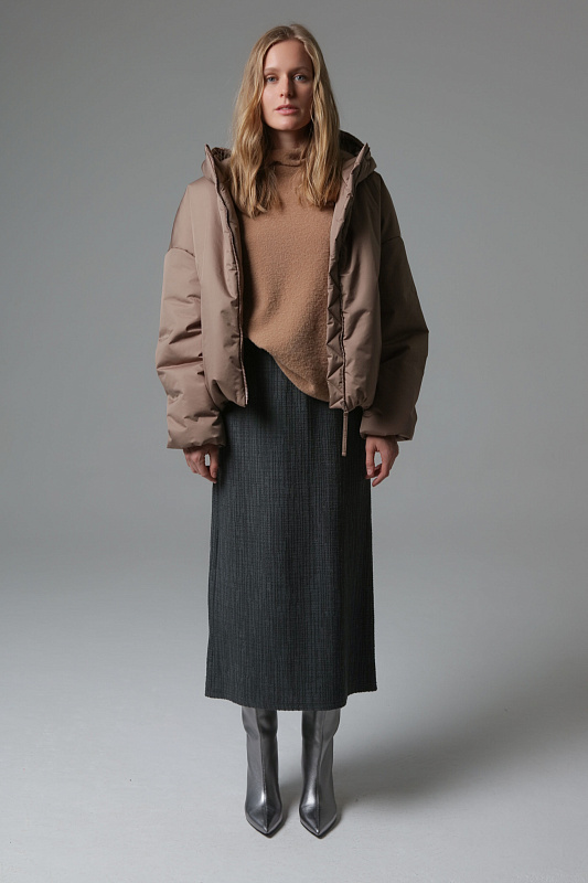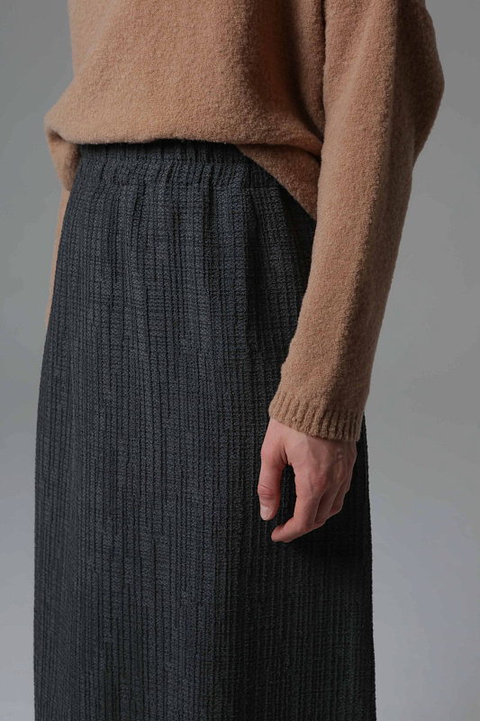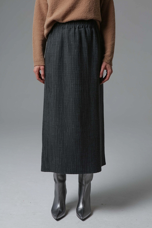 Узкая юбка прямого кроя из сложного эксклюзивного жаккарда без подкладки. Практичная длина миди делает ее универсальной. Ткань не мнется, прекрасно тянется, благодаря чему юбка комфортно садится по фигуре и в сочетании с высокой посадкой визуально стройнит. При ходьбе не ограничивает шаг. Удобный пояс на резинке с молнией сзади.