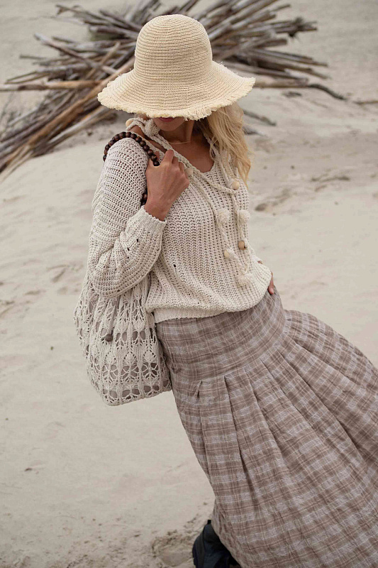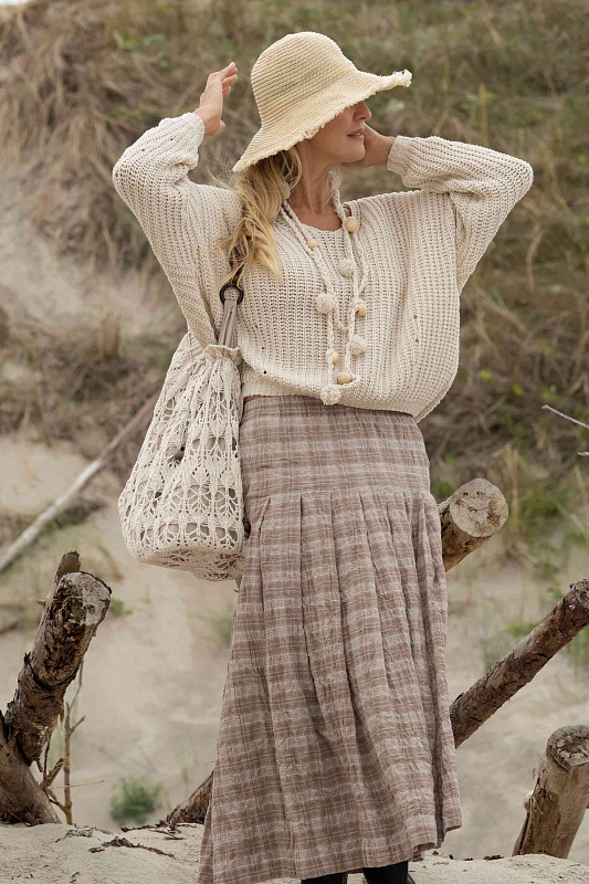 Эффектная легкая юбка в складку из немнующегося жатого хлопка с добавлением эластана. Пояс на резинке. Карманы в боковых швах.