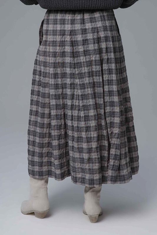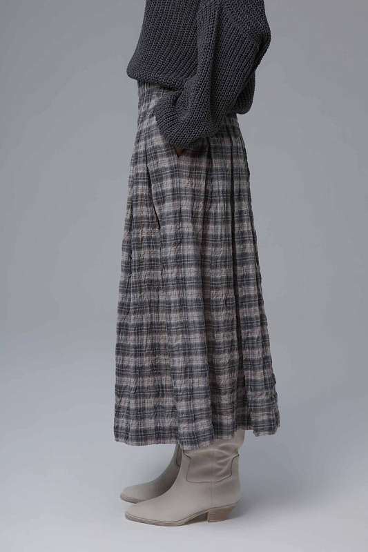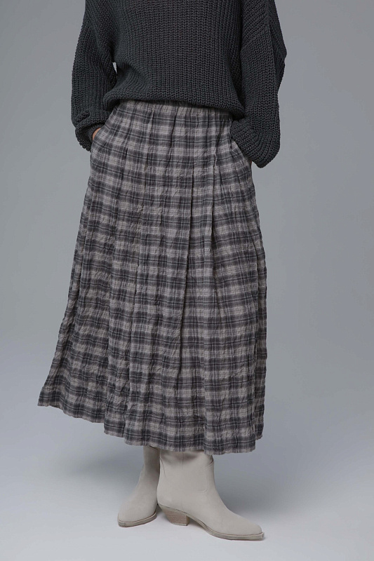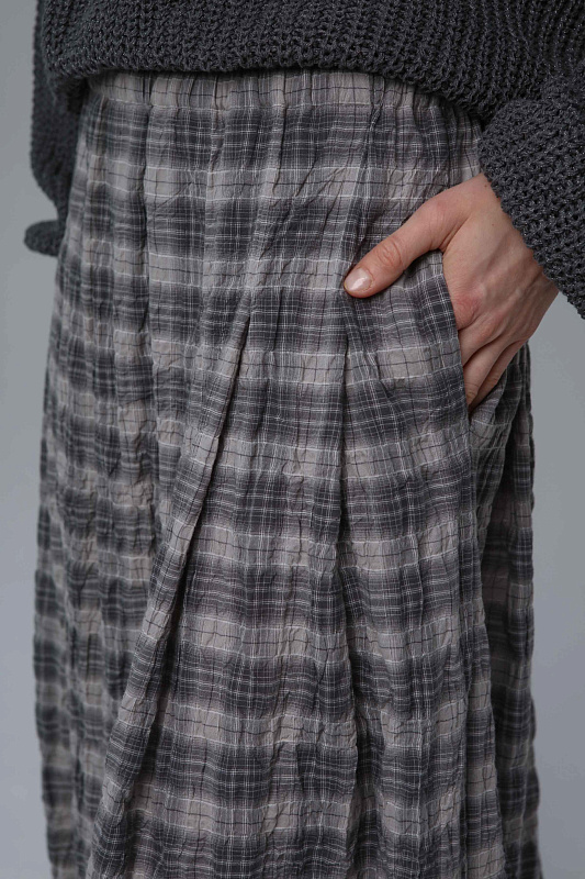 Эффектная легкая юбка в складку из немнующегося жатого хлопка с добавлением эластана. Пояс на резинке. Карманы в боковых швах.