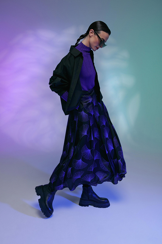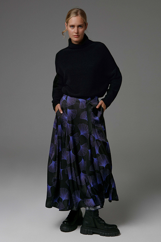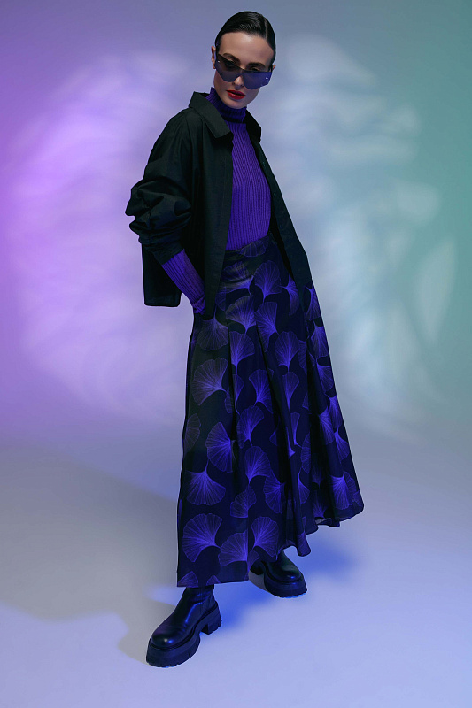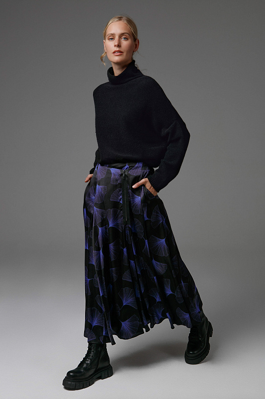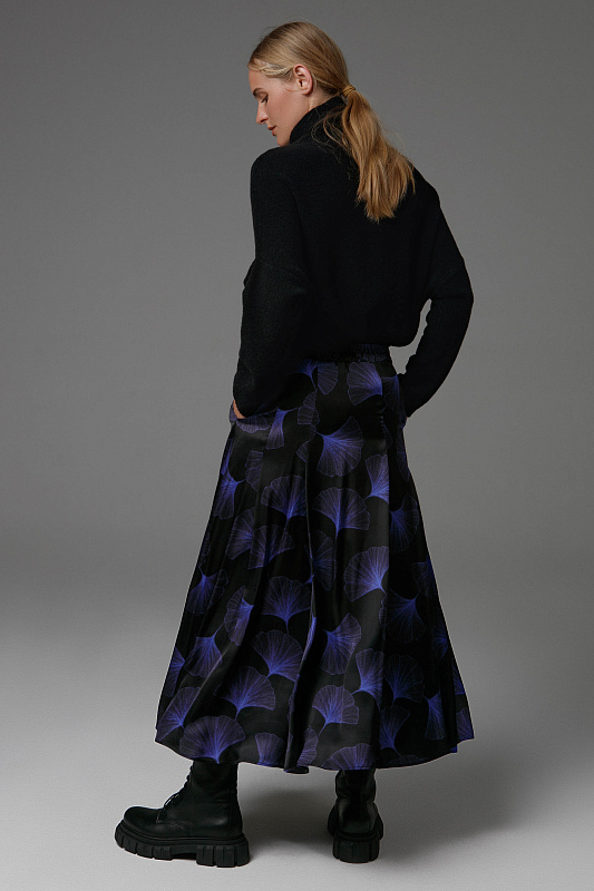 Юбка из очень нежной шелковистой вискозы с необычным современным принтом. Модель на подкладке. Оригинальные застежка молния. Сзади пояс на резинке. Карманы в боковых швах.