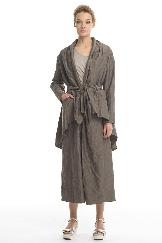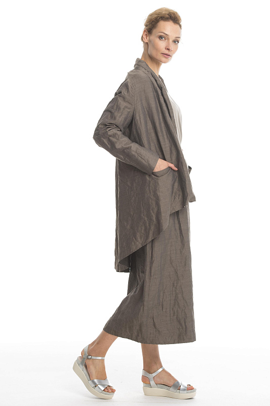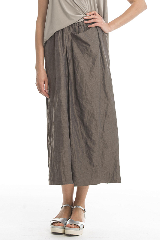 Прямая юбка миди. Спереди цельнокроенная драпирующаяся деталь, имитирующая запах. Пояс на резинке.