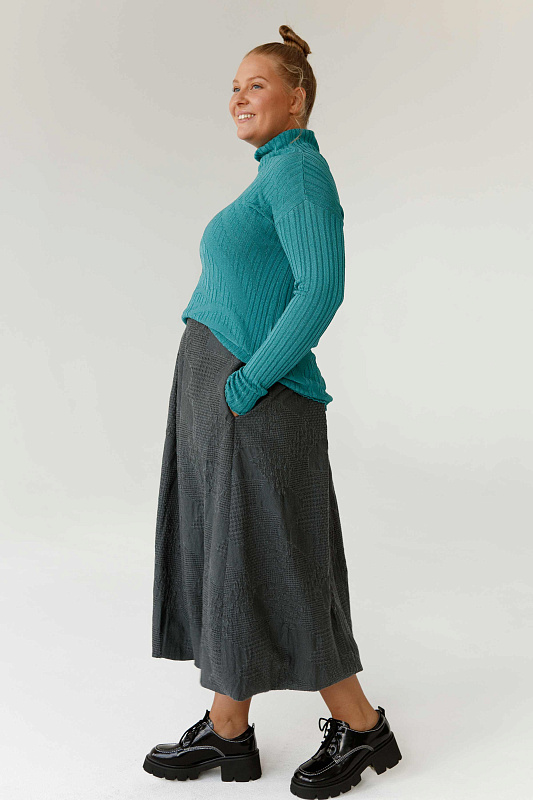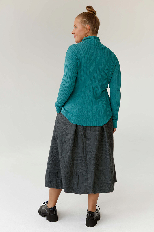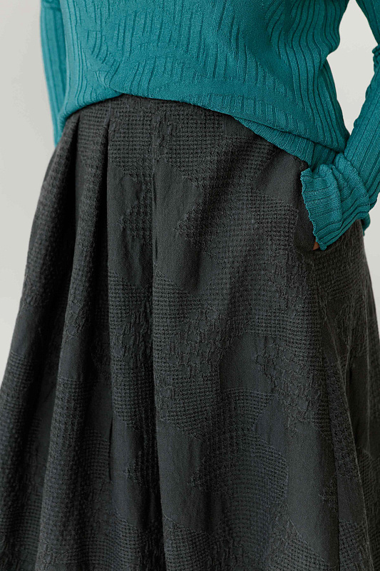 Жаккардовая юбка баллон, оригинальной дизайнерской конструкции, пояс на резинке и на потайной молнии, карманы в шве. Ткань тонкая шерсть с хлопком практически не мнется.