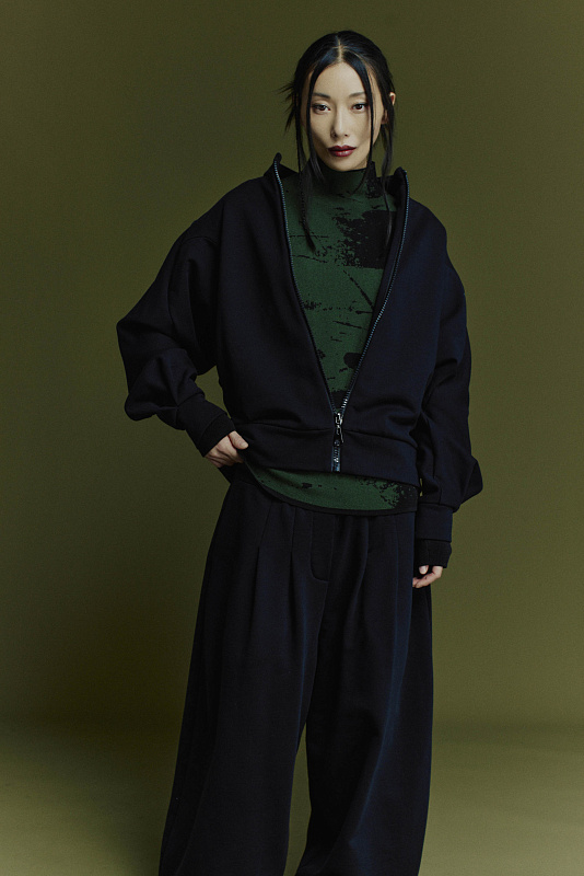 Жакет из плотного хлопкого футера - стильный акцент нового сезона. Фигурыне ластовицы на рукавах формируют летящий силуэт. Отложной воротничок, застежка на тракторную молнию. Два удобных кармана. Фирменный стиль бренда подчеркивает логотип LESEL по левой передней полочке. В комплекте с брюками широкий ромб арт. 8326000 или кюлотами арт. 8326100 Вы создадите дерзкий креативный образ.