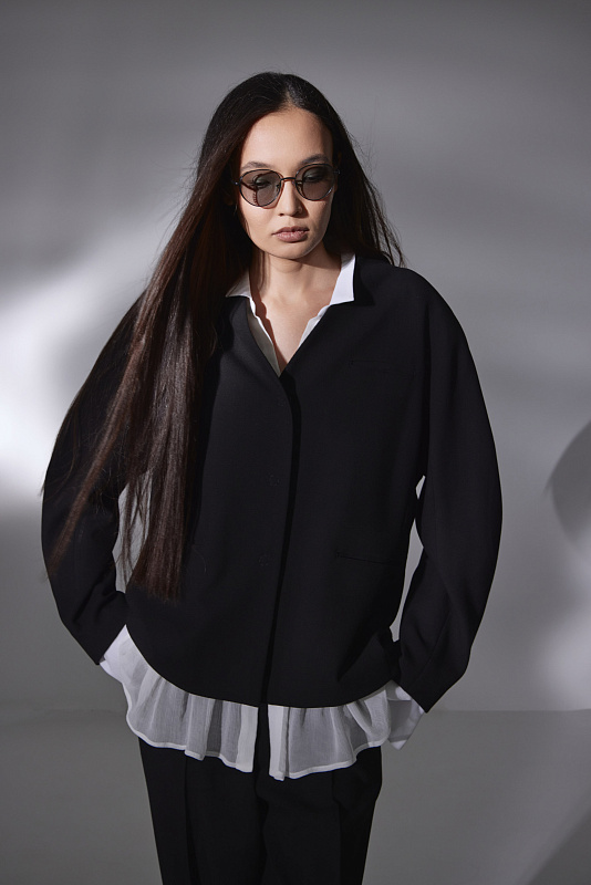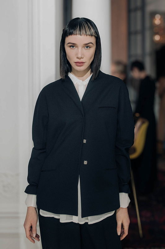 Укороченный жакет — это настоящее искусство, созданное для тех, кто ценит свободу движений и элегантность. Его силуэт, напоминающий овал, выгодно подчеркивает достоинства фигуры, удлиняя линию ноги и акцентируя внимание на талии.Особую привлекательность жакету придает рукав реглан — элегантное решение, которое мягко и плавно переходит от линии плеч к рукавам. Два боковых кармана добавляют жакету функциональности и удобства. А дизайнерский акцент — фальши карман на груди — придает образу завершенность. Подкладка жакета помогает сохранить его форму, а уникальная фактурная ткань, созданная из гармоничного сочетания вискозы и нейлона, придает ему особый шарм. Этот жакет идеально сочетается с юбкой арт. 7625000, создавая стильный и гармоничный ансамбль.