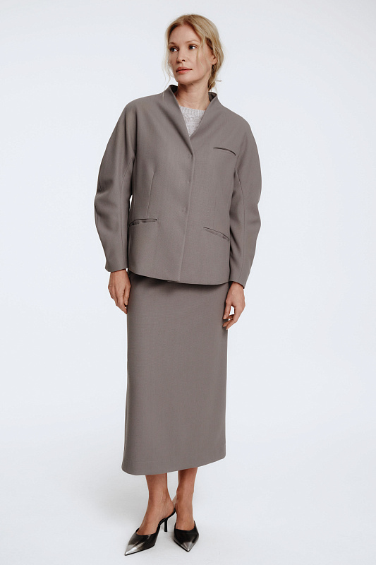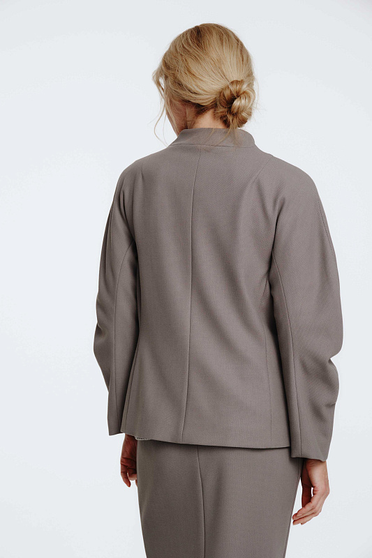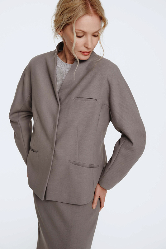Укороченный жакет — это настоящее искусство, созданное для тех, кто ценит свободу движений и элегантность. Его силуэт, напоминающий овал, выгодно подчеркивает достоинства фигуры, удлиняя линию ноги и акцентируя внимание на талии.Особую привлекательность жакету придает рукав реглан — элегантное решение, которое мягко и плавно переходит от линии плеч к рукавам. Два боковых кармана добавляют жакету функциональности и удобства. А дизайнерский акцент — фальши карман на груди — придает образу завершенность. Подкладка жакета помогает сохранить его форму, а уникальная фактурная ткань, созданная из гармоничного сочетания вискозы и нейлона, придает ему особый шарм. Этот жакет идеально сочетается с юбкой арт. 7625000, создавая стильный и гармоничный ансамбль.