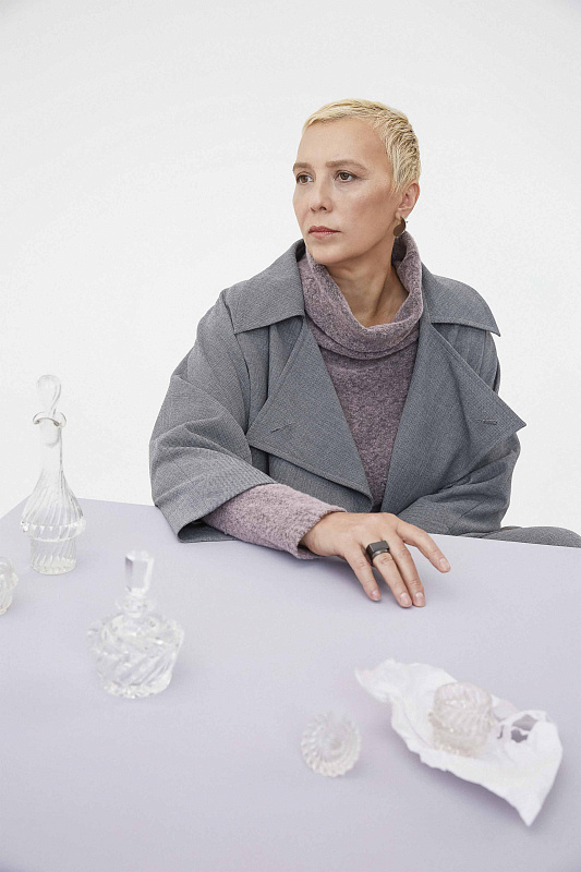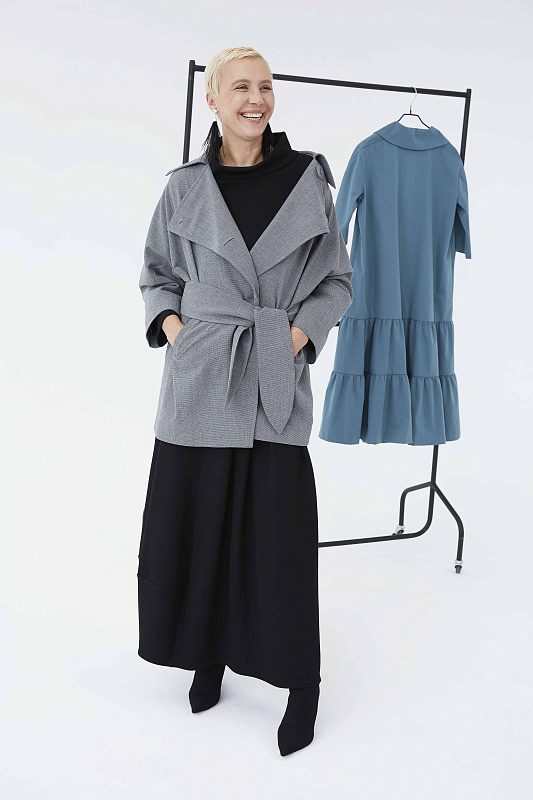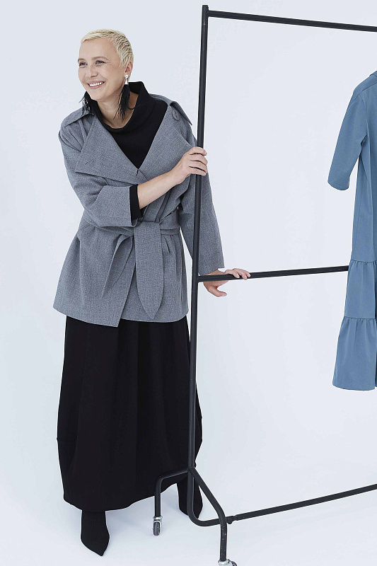 Жакет, на больших оригинальных пуговицах. Прямой силуэт, рубашечный воротник, прорезные карманы, жакет на поясе. Уникальная ткань будущего - керамика, оказывающая благотворное воздействие на здоровье, содержащая антибактериальные вещества, препятствующие размножению бактерий и, как следствие, появлению запаха от одежды, помогает чувствовать себя комфортно в движении и не мнется, а косая линия борта в модели вытягивает силуэт. Длина изделия по спинке 82 см.
